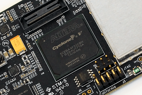 At the core of the bladeRF 2.0 micro is the latest generation Cyclone V FPGA from Intel (formerly Altera). The xA5 features a 77KLE FPGA of which about 60KLE are available and user programmable. Optionally, to accelerate modems in HDL and for additional FPGA space, consider the bladeRF xA9, which features the largest-in-class FPGA of any single SDR with 301KLE of which about 292KLE are available and user programmable.