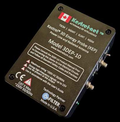 The professional Kestrel 3DEP10 Power Line Probe (KEP) TM and OTA Radiated Antenna Kit is a modern and uniquely designed technologically advanced, low cost solution under the powerful Kestrel® brand and is ideal for deployment in virtually any type of Power Line Carrier (PLC) or Broadband Power Line (BPL). Applications include reference analytical metrics and intermittent or continuous monitoring of the local power grid. All known and developing operational threat levels within the private and public sector national security apparatus can be monitored.