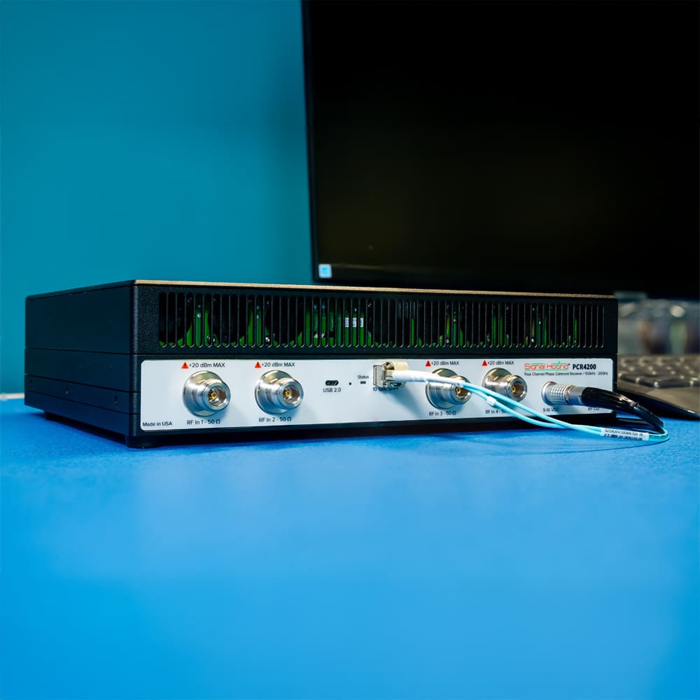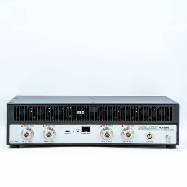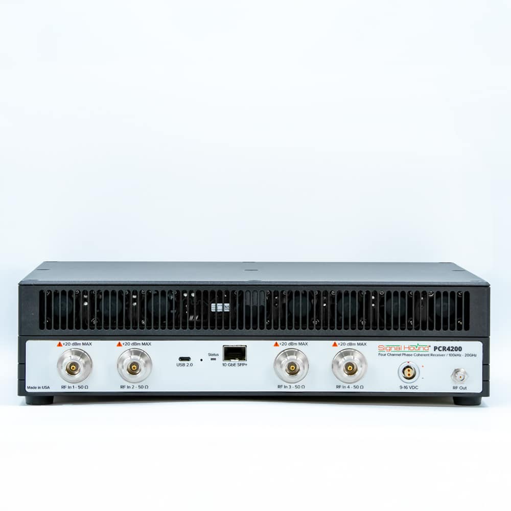 Signal Hound PCR4200 4-Channel Coherent Receiver THE PCR4200 4-CHANNEL COHERENT RECEIVER IS A HIGH-PERFORMANCE, 100 kHz – 20 GHz, 4-CHANNEL PHASE COHERENT RECEIVER, STREAMING I/Q DATA OVER A VITA 49 INTERFACE. This versatile multi-channel receiver features excellent dynamic range (110 dB), outstanding phase noise performance and extremely fast sweep speeds.... Read More