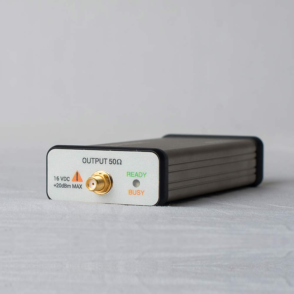 The Signal Hound VSG25A Vector Signal Generator is a 100 MHz to 2.5 GHz vector signal generator, featuring a 12-bit I/Q baseband arbitrary waveform generator which can be clocked at virtually any frequency from 54 kHz to 180 MHz, and includes a 4096×16 bit pattern buffer for built-in or custom modulation.